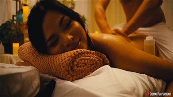 Jess (Scarlett Alexis) hoped that Paradise Pleasures, the sexiest resort on Earth, might save her relationship with her boyfriend Andy, but from the first minute they get there, all he does is sulk and complain… except when gorgeous manager Mia (Texas Patti) gives them some very special attention at the check-in desk. At dinner, Andy pretends to propose as a joke in front of all the guests, and, livid, Jess storms off. While she calms down at the fountain, hunky masseur Sven (Vince Karter) offers her a rubdown to make her feel better, and the sensual touching soon turns sexual as Sven’s hard cock appears in front of her lips. Jess sucks him and squirts as he fingers her pussy, and she feels much better after an athletic fuck! Maybe this vacation isn’t ruined after all…