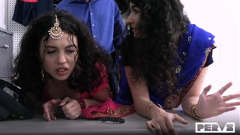 With the excuse of shopping for a friend’s wedding, Nikki and Satine, two pals with a knack for getting in trouble, are accused of shoplifting. Dragged by security guard Jack Vegas, the girls are questioned about the missing goods, as the officer has evidence of them hiding jewelry under their Indian sari dresses. Cornered and nervous, Nikki and Satine try to deny the whole thing, but Jack is onto them, and he has zero tolerance for little lying brats. Convinced of their crimes, Officer Vegas checks the girls’ cavities to both look for stolen goods and teach them a lesson about stealing. Now completely broken and under the threat of going to jail, Nikki and Satine decide to cooperate with Jack to avoid facing the consequences. The handsy officer fondles the two felons and feeds them with dick with the promise of keeping the whole incident secret.