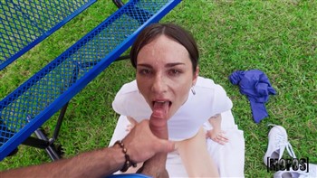 Blowjob Brunette Natural Tits Shaved Pussy Sneaky