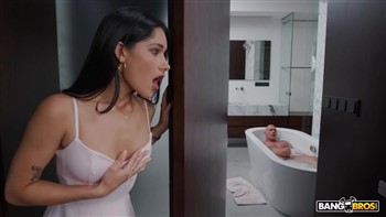 Carolina Guerrero is finally home and checks to see if anyone else is in there. To her suprise, she sees her stepdad Christian Clay jacking off in the tub. She couldn’t believe how big her stepdad’s cock was and got so horny she had to start touching herself. She thought she could be sneaky and get in the tub to jack him off but Christian was startled and tried to stop her. She had to remind him that she was only her stepdaughter and she wanted to jack off his giant dick for him. He couldn’t resist the soft hands and her tits bouncing right in front of him. One thing lead to another and she’s taking his cock balls deep. I’ll never get over Carolina, the way she moans, the way she shakes her ass, and even the way she raises her legs to show off her pretty feet makes me go crazy!