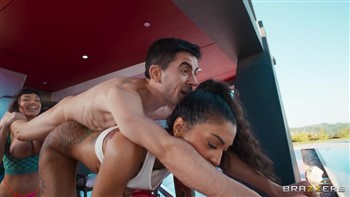 Ravyn Alexa and Little Puck crack wise before their shoot, make out a little bit, then decide the studio is a little draughty. They step outside, and who do they see? Jordi El Niño Polla! Flipping a lusty switch and wasting no time, the duo coax out his cock, throat it, and mash it between their tits – phenomenal teamwork. Unique and athletic positions (seriously, what do you call that one at the 6-minute mark?) before it’s time for these eager pussies to get railed on the couch. Superman, titfucking, facesitting, double-decker pussy pounding – achieved with boundless raunchy creativity capped off only with a messy tongue-coating gobs of cum. The great outdoors – remember to get out and enjoy nature once in a while.